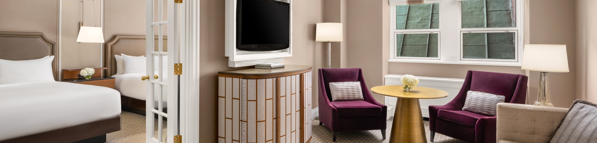 Charmantes et confortables, les suites junior sont parfaites pour les familles et les clients d’un long séjour. Elles sont composées d’une chambre à coucher et d’une salle de séjour séparée.