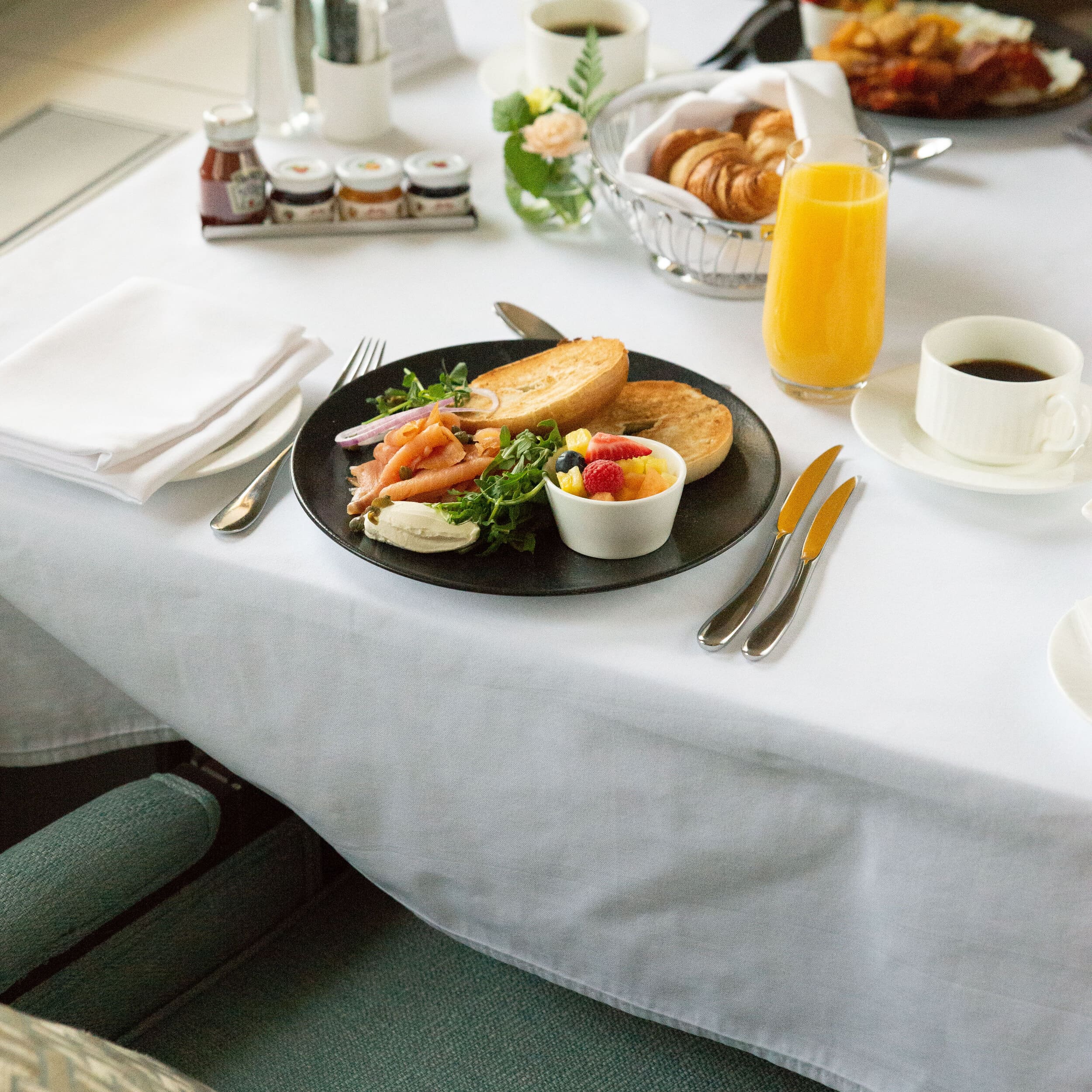 De délicieux plats sont préparés par notre équipe culinaire et servis avec élégance et raffinement par notre personnel de service.