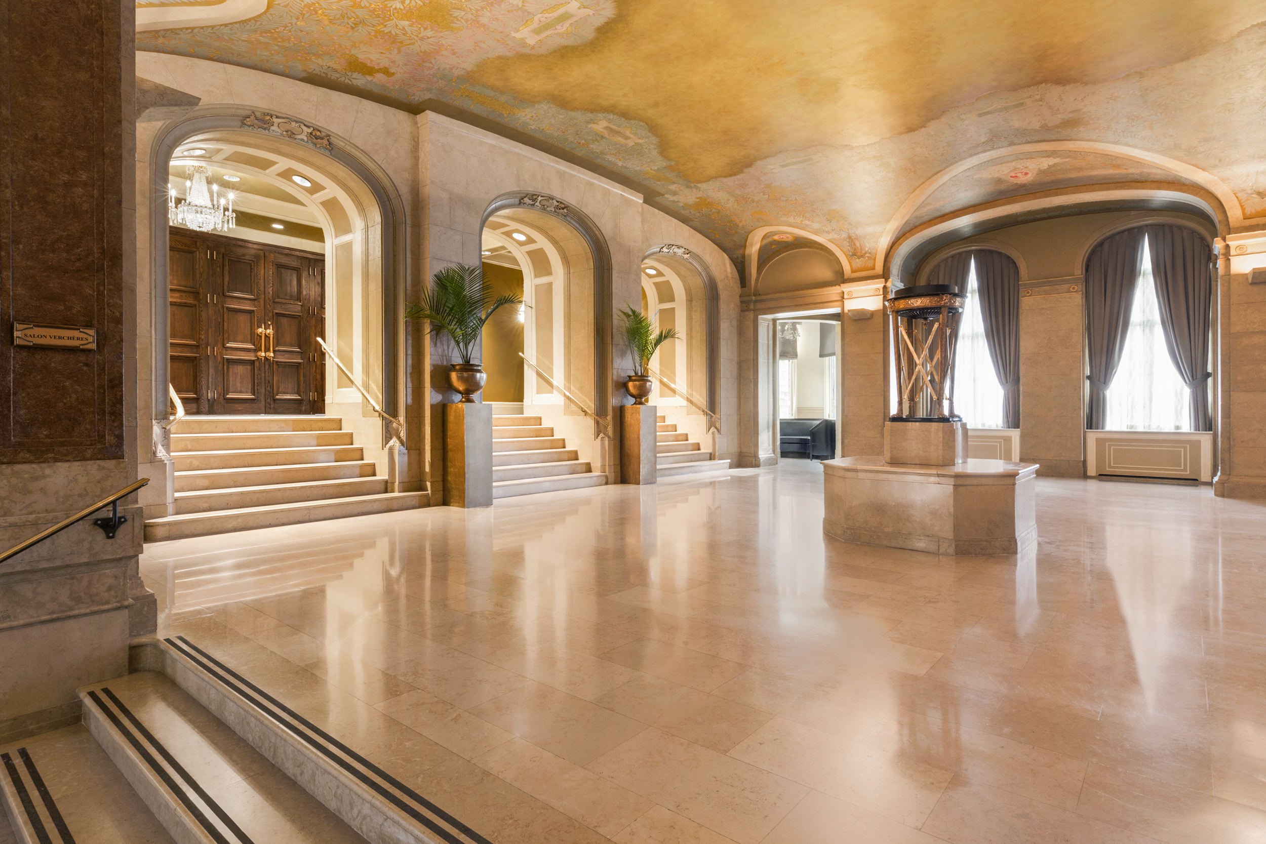 À l’origine utilisé comme salon de thé de l’hôtel, le Verchères est un espace à aire ouverte dont le point de mire est un magnifique plafond peint à la main qui date des années 20. Adjacent à la Salle de bal dont il devient le prolongement naturel, le Verchères est parfait pour les cocktails ou les tables d’enregistrement. On y accède en montant l’escalier à double volée situé au bout du lobby.